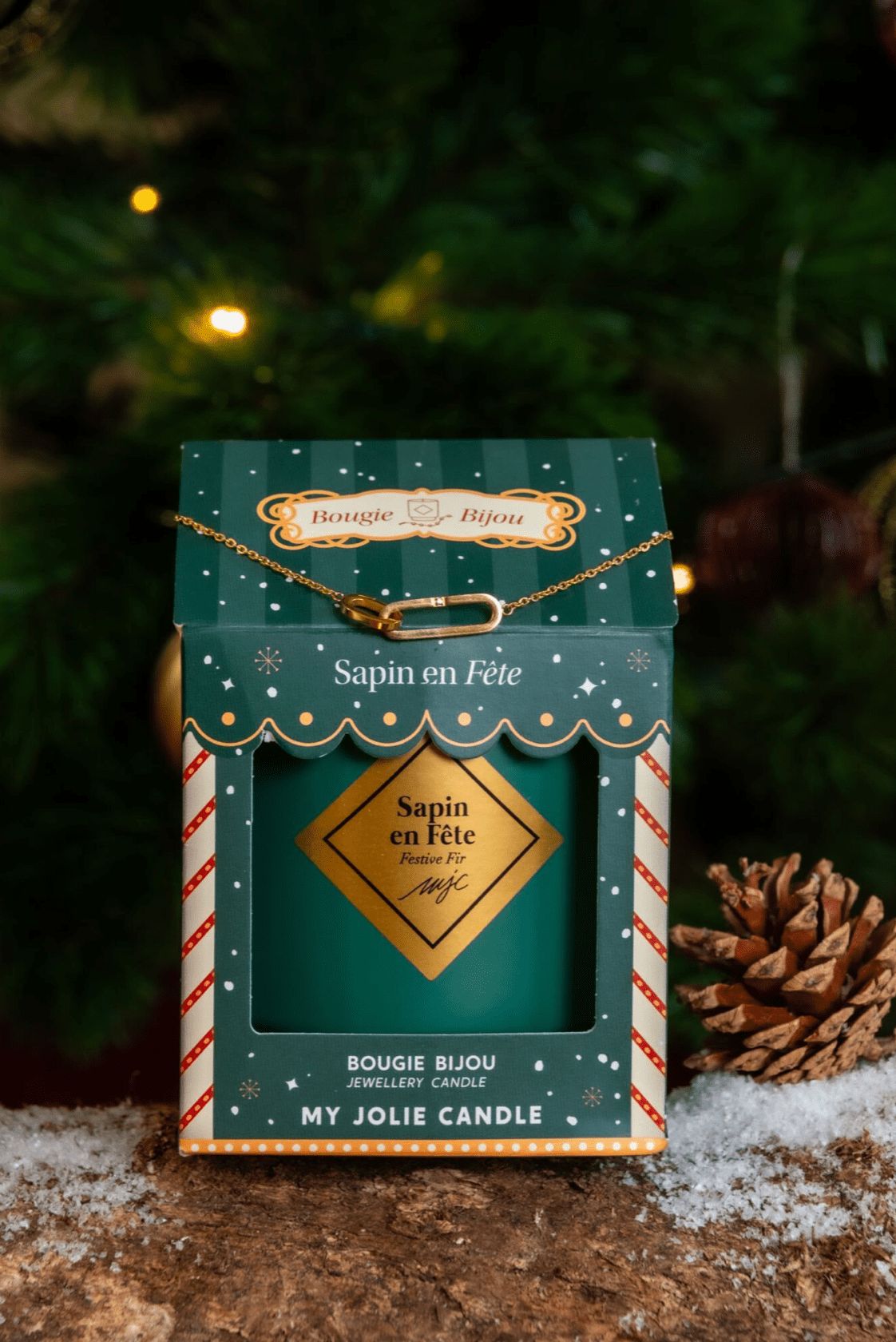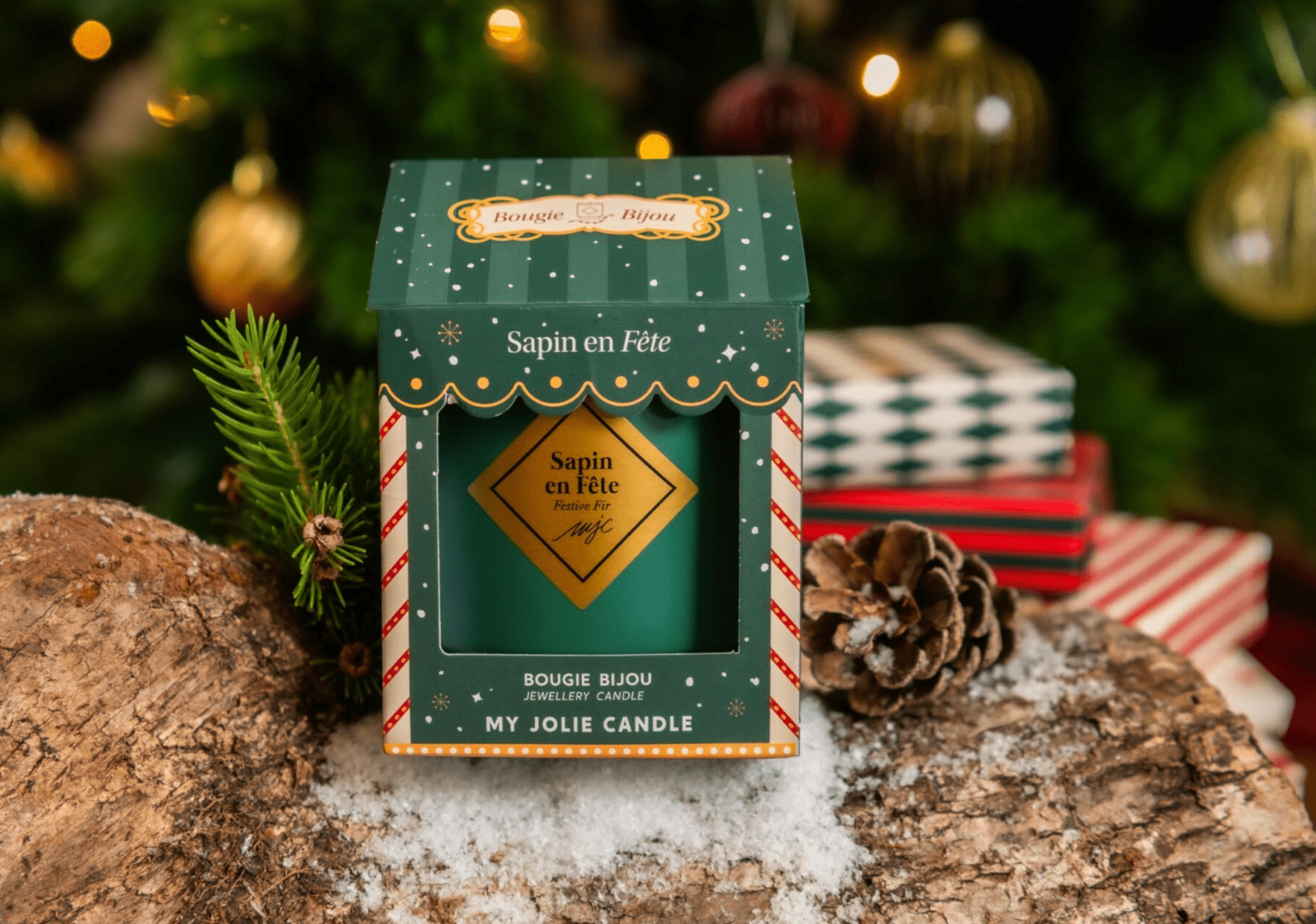 Laissez-vous séduire par notre somptueuse Bougie Bijou Sapin en Fête, une création unique de My Jolie Candle qui incarne l'esprit de la saison avec une touche de luxe. Parfaite pour embellir votre intérieur, cette bougie est bien plus qu'un simple objet décoratif. Elle est une véritable invitation à créer une ambiance chaleureuse et élégante chez vous.
