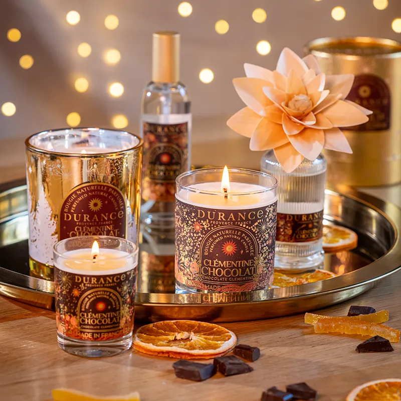Découvrez la Bougie Mèche Bois Clémentine Chocolat par Durance