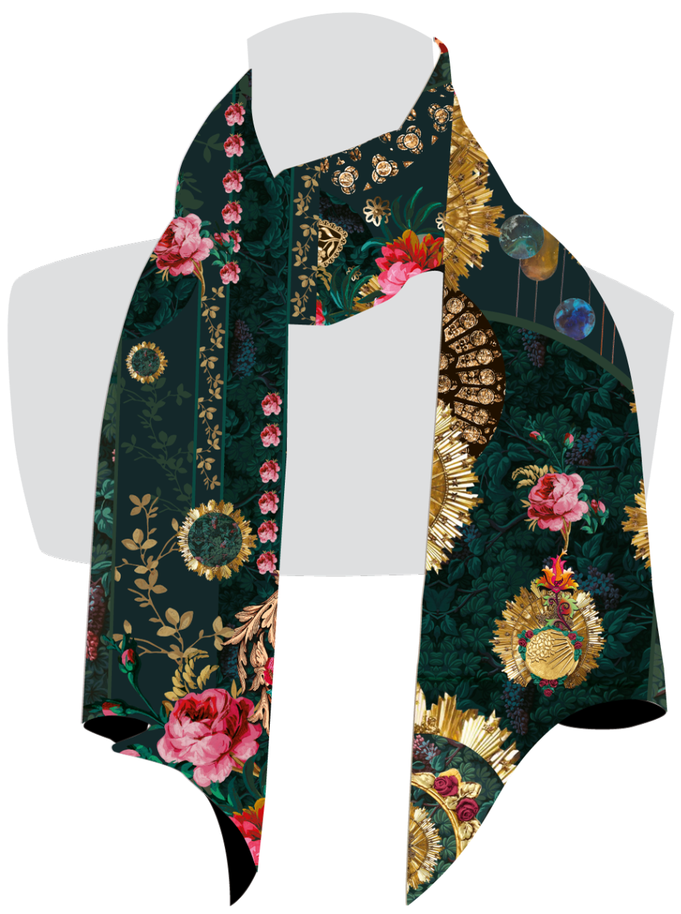Un unviers mystique et délicat, sur votre cou, avec notre petite écharpe femme "PARADIS".