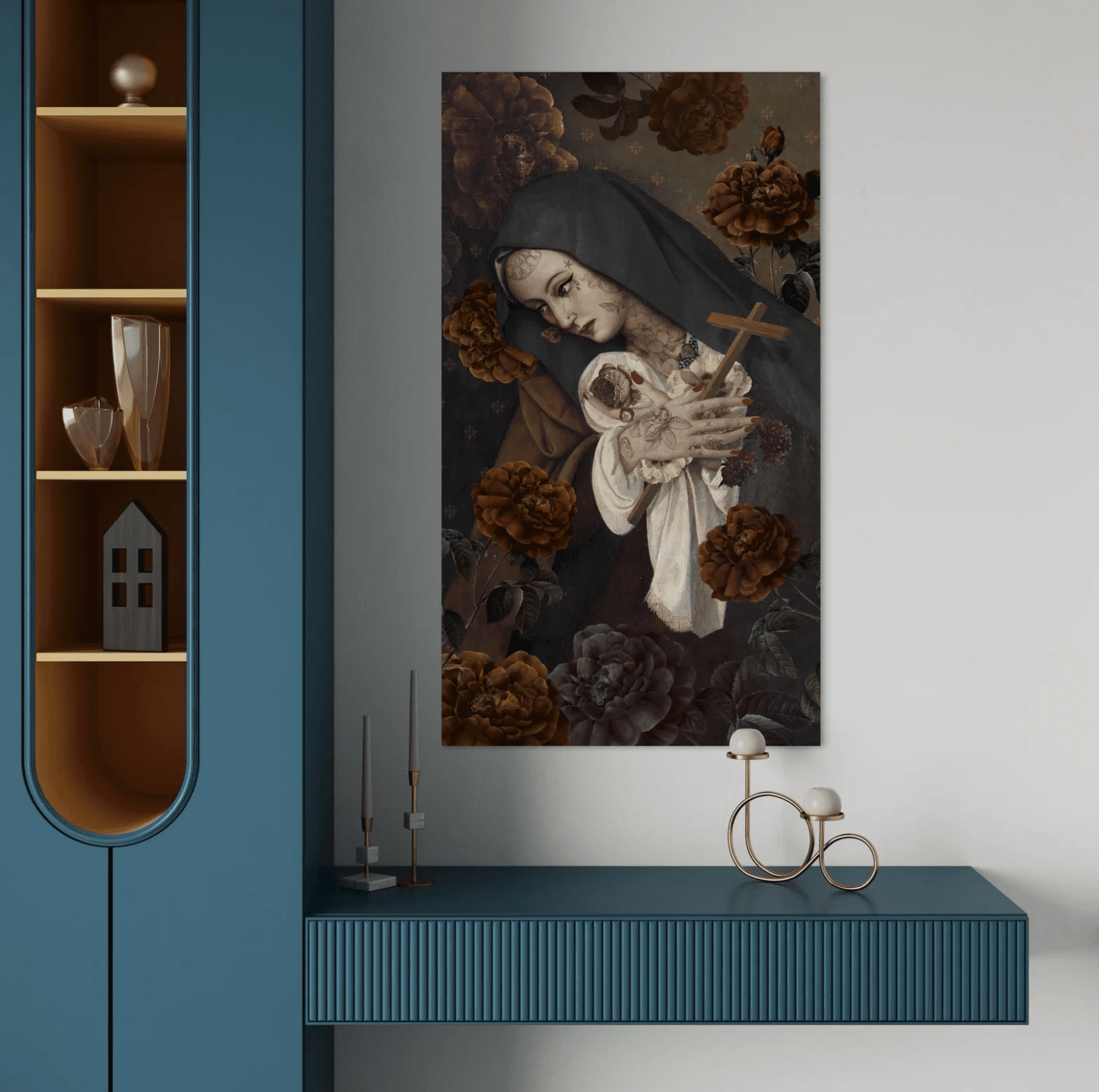 Découvrez la Tentures Sainte Thérèse de la marque Voglio Bene, une pièce unique qui ajoutera une touche de raffinement et de spiritualité à votre intérieur. Conçue avec soin, cette tenture évoque la grâce et l'élégance.